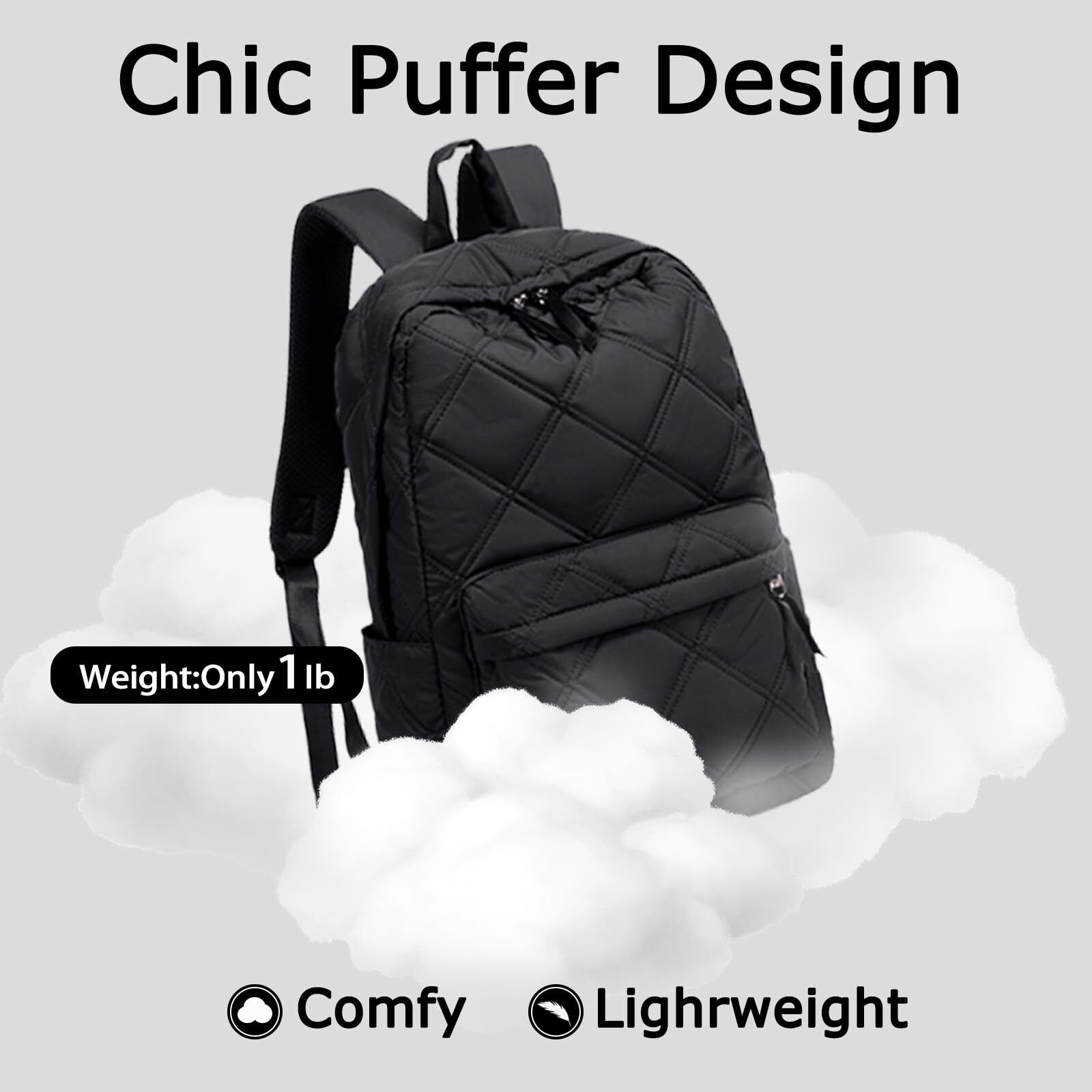 Welcome to our stores! Discover Top Quality Products! We assure your satisfaction. Backpack for Women Travel Backpack Qulited School Backpacks Lightweight Water-Resistant Casual Daypack Backpacks Puffer Bookbag (Black) Image Gallery Product Information Product Highlights Great Solution for Your Electric Equipment:This backpack includes a capacious main compartment great for your books and daily essentials, a dedicated 17" laptop compartment to keep your device secure. Measuring 17.3" x 11.8" x 6" and with a 20-liter capacity, it provides plenty of space to accommodate all your daily needs. Multi-Pocket Functionality:Simplify your organization with the women's casual daypack backpack, featuring a generous and thoughtfully designed interior. This backpack includes a capacious main compartment great for your books and daily essentialsan inner zipper pocket for valuables, two additional side pockets for extra storage, and a convenient front pocket for quick access to your go-to items. Fashion Meets Functionality: This qulited backpack skillfully blends practicality with fashionable elements, allowing you to showcase your personal without sacrificing functionality. Whether for daily commutes, professional settings, or leisure activities, it is an essential fashion item that effortlessly integrates into every aspect of your life. Comfortable Design: The padded shoulder straps and back panel provide comfortable carrying, even when fully loaded.Made from supple, lightweight puffer material, complemented by cushioned straps and a ventilated mesh back panel, revel in the comfort of a soft and featherlight backpack that won't add unnecessary. Ideal Gifts: our lightweight and water-resistant backpack is ideal for travel, school, or daily use, and it also serves as a stylish and practical gift for friends, girlfriends, wives, and others celebrating a birthday. This bookbag stands out as a unique birthday gift for women, offering both functionality and flair. Thank you for your business! Contact Us ✉ For any inquiries, please reach out via the eBay messaging system. We aim to respond within 24 hours. Payment Methods 💳 We accept PayPal, credit cards, and other payment methods supported by eBay. Ensure your payment details are correct to avoid delays. Shipping Information Your item will be shipped to the address listed on your eBay account. Please confirm your address before completing the purchase. Shipping typically takes 3-7 business days. In case of delays, please allow an additional 2-3 business days due to postal service issues or technical problems. We use reliable shipping services like UPS, FedEx, and USPS. We ship only to the 48 contiguous states. Unfortunately, we cannot ship to Alaska, Hawaii, US territories, APO/FPO addresses, or PO Boxes. Local pickup is not available. If there are any issues with your delivery, please contact us promptly. Your Feedback 🌟 We value your feedback and strive to earn your trust. If you're not satisfied with your purchase, please contact us and we'll work to resolve the issue. Return Policy - We offer a 30-day return policy. - If the item is defective or you are not satisfied, contact us for a replacement or refund. - All returns must be sent to the address provided upon contacting us.