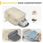 LARGE CAPACITY MULTI-POCKET: As travel essentials spirit airlines personal item bag 18x14x8, this travel bags for women has many compartments, holds about 35L. The main pocket can hold your travel goods, including two days clothes. The front compartment with various pockets can put small items. This Casual Bag has a built-in laptop compartment that fits up to 16 inch laptop. Note:There is no separate laptop compartment. FLIGHT APPROVED LAPTOP BACKPACK: The 180-degree zipper closure ensures a swift security check, The dedicated zipper design enables quick and easy access to your laptop without disrupting the contents of the bag. This travel laptop backpack women is designed to fit both overhead compartments and under seats. This carry on bags for airplanes tailored to meet airline carry-on requirements, it's a convenient choice for women travelers. WITH LUGGAGE BELT & ANTI-THEFT POCKET: Equipped with a convenient luggage belt on the back, this carry on backpack is designed for seamless integration with your suitcase, making it effortlessly portable for business travelers. The added practicality extends to a discreet anti-theft pocket located on the lower back, safeguarding your valuable items like wallets, passports, and ID cards from potential thieves during travel or while waiting in line. SEPERATE SHOE COMPARTMENT AND WET BAG: A dedicated shoe compartment at the bottom of the carry-on backpack ensures that your shoes are kept separate, maintaining cleanliness for the rest of your belongings. Additionally, the front wet bag, crafted from high-density waterproof material, allows you to segregate dry items from wet ones, such as damp clothes or towels, providing a convenient and organized solution for your travel needs. WIDELY USED: This personal item travel bag seamlessly transitions between various styles—backpack, duffle bag, shoulder bag, travel bag as underseat luggage. Designed as a carry-on travel backpack for women, it's perfect for daily use, travel, hiking, gym etc. An ideal weekender companion, it also makes for a thoughtful birthday gift for daughters and women. The beige design with a dedicated laptop compartment adds a stylish touch, catering to different needs with its multifunctional features.
