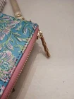 Elevate your travel essentials with the Lilly Pulitzer Travel Wallet in the stunning Cumulus Blue pattern. This chic wristlet is not only a stylish accessory but also a practical necessity for the organized traveler. Featuring a secure zipper closure, this wallet is designed to safely hold your passport, IDs, and other important documents while you're on the go. The wallet's compact design ensures that you can carry your essentials without being weighed down by a bulky bag. The vibrant pattern and high-quality construction make it a perfect combination of fashion and function, ideal for the modern traveler. Whether you're going on a leisurely vacation or a business trip, this Lilly Pulitzer Travel Wallet is a must-have accessory. It is 6"×9". It is preowned in great condition. I do not know if it was supposed to come with an ink pen- there was no one.