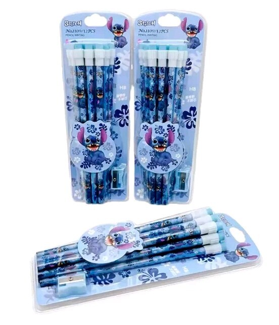 Matite Lilo& Stitch blu 12 PZ+ temperamatite Idee Regalo Bambini