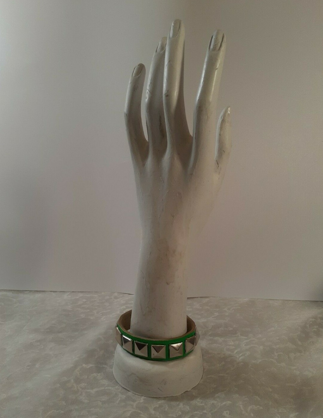 Jewelry Department:FashionSigned:NoCharm Type:no chainSeller Notes:“Good condition - no tears or rips - no discoloration”Country of Origin:UnknownSecondary Stone:naBrand:UnbrandedItem Length:8.75 inchColor:GreenFeatures:AdjustableOriginal/Reproduction:OriginalMain Stone Color:naSeller Warranty:NoMetal Purity:UnknownType:BraceletDiamond Color Grade:naCustomized:NoMain Stone:No StoneHandmade:NoVintage:YesCountry/Region of Manufacture:UnknownMetal:UnknownSizable:YesBase Metal:UnknownMain Stone Treatment:naDepartment:Unisex AdultClosure:SnapWholesale:NoMain Stone Shape:naStyle:cuff with snapsMain Stone Creation:naEra:UndatedMaterial:Faux LeatherTheme:ArtShape:RoundOccasion:all occasionAntique:No