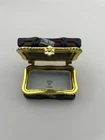 The Limoges Suitcase Trinket Box is a small, multicolor porcelain box featuring a design inspired by New York and London travel. Handmade in France, this original trinket box is perfect for storing small treasures or keepsakes in any room. With a boxed packaging and care instructions to clean with a damp cloth, this late 20th-century piece from Limoges is a unique and elegant addition to any collection.
