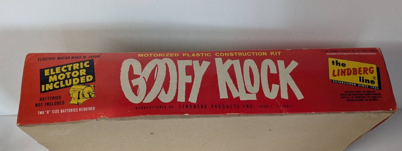 Please ask any questions before making the purchase. (Area B3) Lindberg 1965 687M:198 Goofy Klock Motorized Model Kit With Box. S/H FOR THIS ITEM WILL BE $10.00 IN THE STATES AND WILL INCLUDE DELIVERY CONFIRMATION. ALL SHIPPING IN THE STATES WILL BE DONE USPS, FIRST CLASS OR PRIORITY! WILL SHIP WORLD-WIDE.