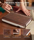 Return Policy Fast Delivery Trusted seller Lined Journal Notebook for Women Men, 256 Numbered Pages Hardcover Leather Journals for Writing, A5 Journaling Notebooks, College Ruled Journal for Business Work School Note Taking 5.75" x 8.38" Brown Product Description 【Hardcover Leather Journal Notebook】Our Lined journal made from high quality thickened hardcover leather and have a luxurious high-grade looks. Which is not only beautiful, but also more comfortable and delicate to touch. What's more, the notebook adopts a sturdy thread sewn edge process to ensure that the leather and will not fall off, stand the test of time. With this exquisite water-resistant hard cover, you can rest assured that your journal will be a cherished keepsake for years to come. 【256 Numbered Pages with Contents】 This journal notebook is specifically designed to provide you with all the writing space you need. It includes 256 pages numbers and a 3-page blank table of contents, you can jot down important notes from various pages and note them in the front of the book for easy and fast reference. 80Gsm acid-free ivory paper that's smooth to the touch and thicker than your average notebook. Which ensures that t will no ghosting or bleed-through on your pages. 【A5 Upgrade Journal Notebook】The journaling notebooks also feature 3 colored ribbon bookmarks, allowing you to easily keep track of important pages. 2 elastic closure design ensures that the notebook remains securely closed, keeping your notes and thoughts confidential. 1 back inner pocket for stashing notes etc. Including 1 elastic pen loop and 2 index tabs stickers. A5 size 5.75'' × 8.38'', perfect size for carrying around or put into your bag or purse, perfect addition to your daily routine! 【180° Lay Flat Design】The 180° lay flat design, combined with a sturdy thread-bound binding, the leather notebook can easily to lay out flat makes taking notes more efficient, reading more convenient, which provide a comfortable writing experience. Rounded corner design makes the lined notebook not easy to be damaged and curled. Standard 8mm space classic college ruled journals, each journal page has “Memo No” and “Date” header to help you keep track of the date. 【Wide Usage & Ideal Gifts】The leather bound journal is ideal for men women, perfect for business, school, office, home, work, college, students, adults, travelers, scientists, and people in many other fields. Suitable for writing, study, daily journals, drawing, travel, diary notebooks or for taking notes in college classes. Whether it's a birthday, anniversary, or graduation, Mothers Day,Fathers Day,Valentine's Day, Christmas, Halloween, New Year, this notebook will make an excellent gift. Shipping Returns Payment Shipping Shipping is FREE to all addresses other than APO/PO boxes in the lower 48 states. All our stock ships from US-based warehouses. Shipped via USPS or UPS (depending on location and package weight) Unless stated otherwise, all orders will ship within 24-72 hours of your payment being processed. Check our feedback to see the great reviews of FAST shipping we offer. Returns Seller does not accept returns Payment We currently accept payment via eBay managed payments only. Once payment is cleared, we will dispatch your shipment within 1-3 business days. Please refer to the "Shipping" tab for more information regarding shipping speed to your destination.
