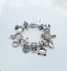 Linx snake chain style charm bracelet in 925 sterling silver, with a ball clasp, featuring the signature Linx logo. This bracelet features 17 Linx charms also in 925 Sterling silver. Size 7.5 Bracelet is also available in sizes 6.3, 6.7, 7.1, 7.9, 8.3 and 9. Should you require one of these sizes, please message us prior to purchasing and we will create a listing for you in your requested size. Please remember to add an additional inch to the measurement of your wrist in order to allow room for your charms, as the charms will cause the bracelet to fit a bit tighter. Bracelet is new with tags and will also come with the original Linx velvet jewelry pouch, and Linx sterling silver polishing cloth.