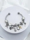 Linx Stainless Steel Open Bangle Bracelet is adjustable to fit most sizes. Bracelet includes 9 Linx brand charms in 925 Sterling silver. The charms can be removed and additional charms can be added as well. Simply unscrew the ball on the end of the bracelet, add/remove your charms and screw the ball back on. Bracelet is 3mm in diameter and is compatible with all Linx brand charms, and most standard size charms of other brands as well. This beautiful bracelet will arrive in a luxury, velvet, LINX jewelry company pouch. Excellent quality, will not fade or tarnish over time.