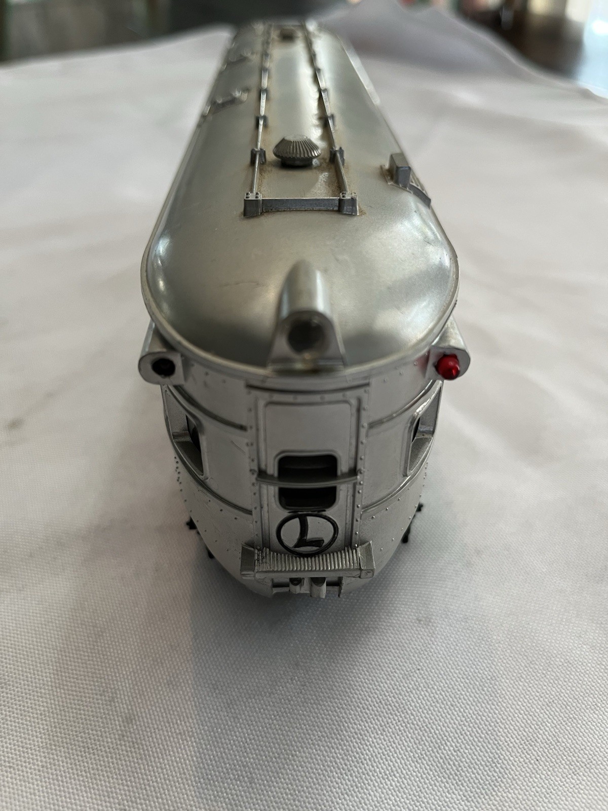 This car is in great condition. Has a little nick on the top that is shown in the picture and one missing red marker light on the rear. All lights work and wiring to the lights look great.