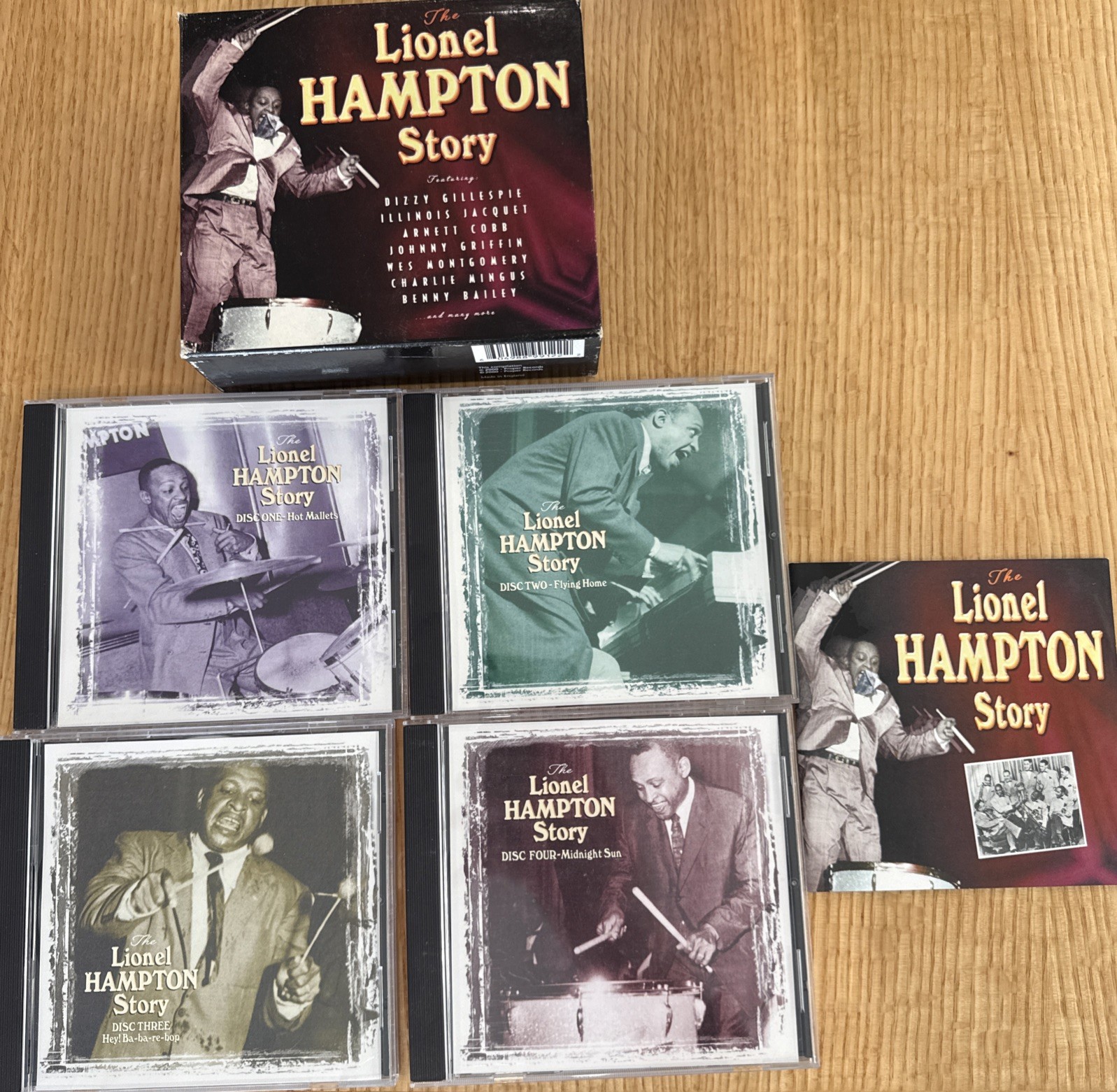 This Lionel Hampton ‘The Lionel Hampton Story’ 4CD Box Set came from my father’s private music collection. The condition of the CDs and associated inlay are near perfect. The outer cardboard slip had minimal wear at corner edges. Almost no condition issues but there is that see pics though bet its hard to see if u can at all. Overall, it’s excellent condition and a fine buy at $20.