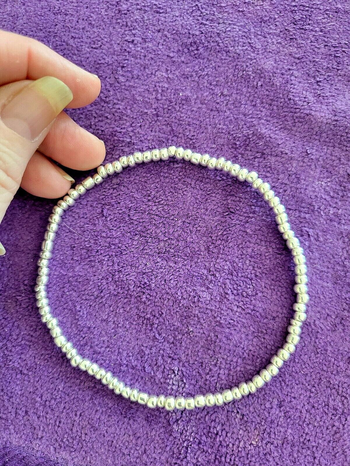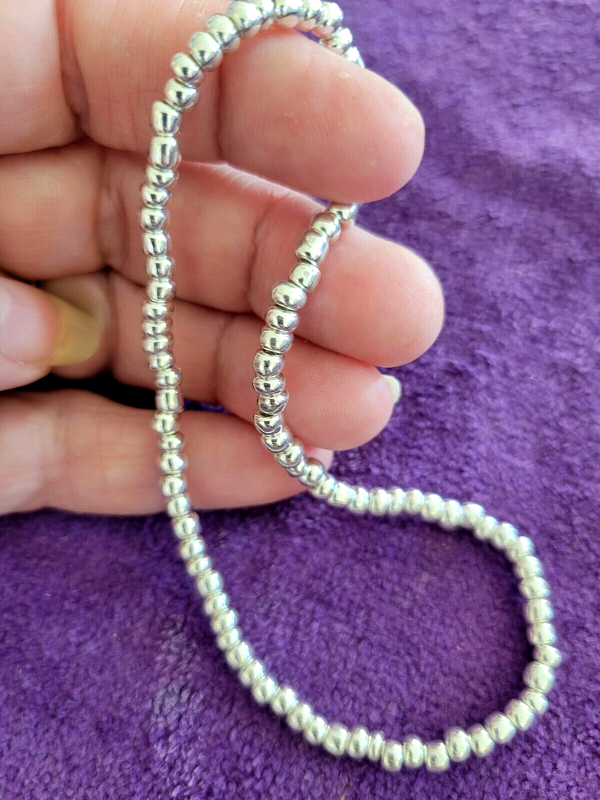 I make ALL of my Anklets in Sizes 9 1/2, 10 1/2, 11 1/2 & 12 1/2. If you need Another Size, just let me Know in the Sales Notes. ~~ 0028900~~ ~Please scroll DOWN to view the entire Listing~ (To use the Magnifying tool to read Tags/Labels and see Closeup views, please choose a picture with your cursor, and then Hold your cursor over the picture. A small magnifying box should appear and will Allow you to see Closeup.) ** Liquid Silver Beauty Bead Beaded Anklet - Energy Life Breath Love - Unique 12 1/2" ** This Anklet is Really Nice, in Excellent Condition, Strung on Strong Elastic for Easy On and Off and a Great addition to Your Wardrobe. Dimensions: 12 1/2" Long Perfect for Yourself or as a Gift! Note to Buyer: I'm sorry postage is so expensive, but I choose to ship your item in a box, so it will arrive undamaged. Also, I Can Create ANY Color Combination of Beads for my Anklets. Just let me know if You Would like a Special Order. No Extra Cost. ~~I'm Great to deal with. Check out my Feedback and my Other Auctions!~~ A+ seller! Super fast shipping, lovely anklet, thank you! I am a repeat customer!!! ~aileen257 Love these ankle bracelets. Shipped fast! ~ikosokar Nice item. Fast delivery. Great communication! ~cinmor99 Item just as described, super fast shipping. Great Ebayer. A++++ ~jennifer315 Please leave Positive & Glowing Feedback and I will be happy to do the same! ~~~~~~~~~~~SMOKE FREE HOME!!~~~~~~~~~~~ Thank you for reading the ENTIRE listing before placing a bid. ~~ Payment MUST be received within 6 days ~~ POLICIES: PLEASE READ BEFORE YOU BID ~Please Ask all Questions BEFORE Bidding - Returns on a Case by Case basis only~ Please read the entire listing BEFORE bidding. **By placing a BID on this item, you are AGREEING to Make Payment and abide by ALL terms, directions & descriptions in this listing.** The Pictures Show the Type of Item you will Receive. The Bead Colors will be the same, but the Bead patterns will be slightly different on the Item you Will receive. Thank Your for Checking out This Listing.