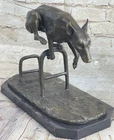 Living Bronze Doberman Pinscher Dog cast bronze statue on marble base 1994 Art Living Bronze Doberman Pinscher Dog cast bronze statue on marble base 1994 Art Condition : This sculpture is in perfect condition. Bronze Dimensions with Marble Base: Height 9" X Length 12" Marble Dimensions: 12"X 6" Height without base: 8.5" Weight: 12 LBS Inventory: 9440K13049 This high-energy dog leaps over hurdles with remarkable skill and vivacity, showcasing its talent and adventurous spirit. Crafted in bronze patina, this sculpture captures the essence of a jumping dog with exquisite details that bring out the dog's elegance and charm. The piece, signed by the artist Milo, depicts the dog gazing intently ahead, capturing a moment of pure athleticism and grace. The statuesque pose of this magnificent creature exudes aristocratic charm and grace. The intricate details of the sculpture, from the texture of the dog's fur to the muscular definition of its body, showcase the artist's dedication to capturing the true spirit of these animals. The warm brown patina finish adds depth and character to the artwork, making it a captivating addition to any space. Whether you're a dog lover, an art enthusiast, or simply appreciate the beauty of nature's creatures, this jumping dog bronze sculpture is a stunning representation of agility and elegance. Display it in your home, office, or gallery to celebrate the athleticism and grace of man's best friend. Shipping Terms : Most of our items are shipped via USPS (United States Postal Service) mail or UPS. Most orders are shipped within 24-48 hours of purchase. Please be aware that not all items are available for USPS shipping due to size and weight. We do ship to Hawaii, Alaska, Canada, Puerto Rico, APO/AE, and U.S. Virgin Islands, however, an additional charge may be required. Please contact us before making any purchases in these areas. For Non-USA customers, you may be responsible for all duty, tax, brokerage fees that may be due upon delivery (shipping costs cover freight charges only). We also ship internationally. Please refer to the "Shipping and Handling" chart for the rates for each area. Payment : We accept just about any form of payment. PayPal, Master Card, Visa or American Express credit cards. Money orders, cashiers checks, and even personal or business checks. For governmental institutions, we will also accept a purchase order. Please understand that for personal or business checks we have to wait for the check to clear (usually 7 days) before shipping. Condition : New Detailed Hand Crafted Hot Cast Bronze Satisfaction Guaranteed. This is Stock Photo, Slight Color Variation!! Listing and template services provided by inkFrog