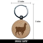 Llama Silhouette Engraved Wood Round Keychain Tag Charm