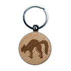 Llavero redondo de madera grabada de Halloween silbando gato negro asustado etiqueta dije