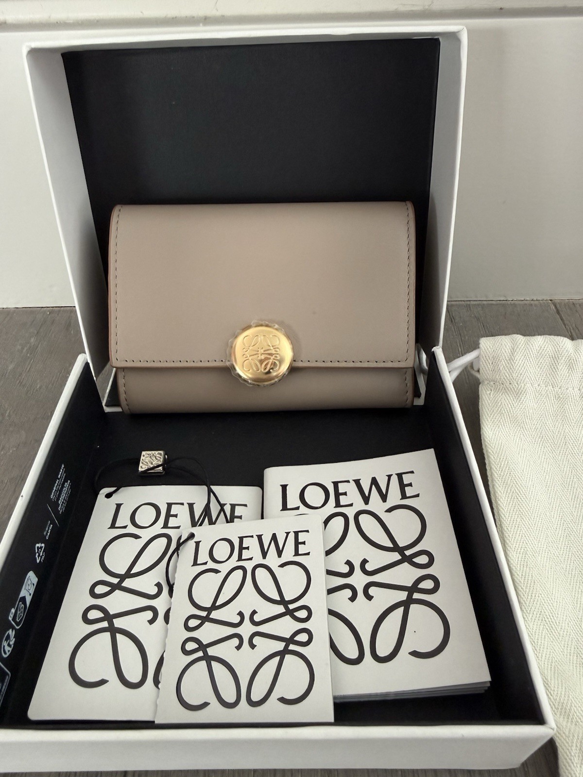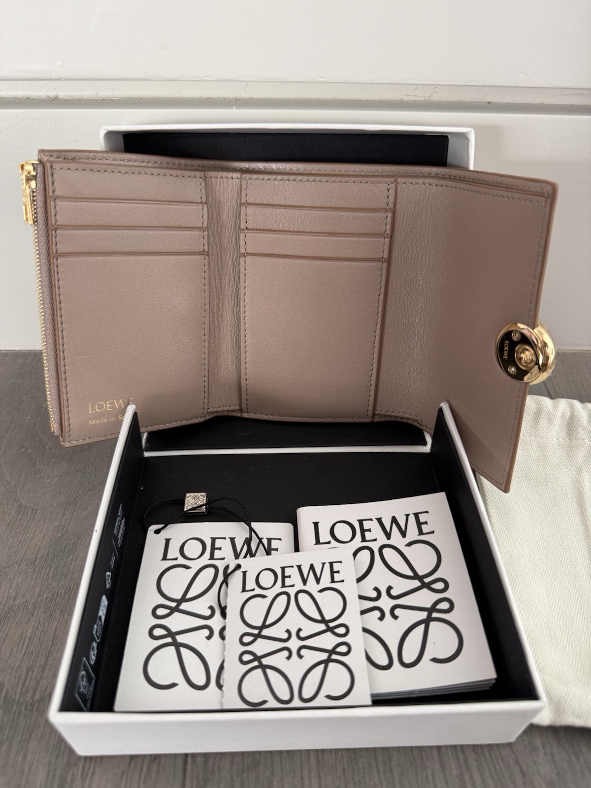 Loewe Sand Small Card Wallet Gold-Tone Logo Folding Credit Card Women's