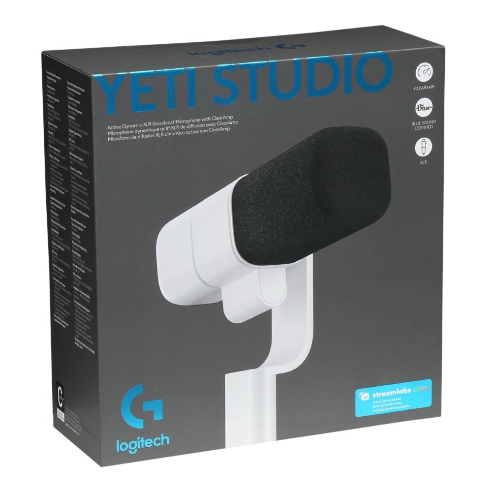 The Logitech Yeti Studio Supercardioid Active Dynamic XLR Broadcast Microphone is a premium microphone built for professional-grade recording, streaming, and broadcasting. Featuring an active dynamic capsule with a supercardioid polar pattern, it delivers focused, high-clarity sound while minimizing background noise — ideal for untreated or noisy environments. With its XLR output, this mic integrates seamlessly into professional audio interfaces and mixers. Its sleek white finish, rugged metal construction, and trusted Logitech engineering make it a reliable and stylish choice for podcasters, streamers, musicians, and content creators seeking elevated audio performance. MSRP: $380 The product comes in its original packaging, free from any flaws or issues. It’s undamaged and functions perfectly. All the necessary accessories are also included.