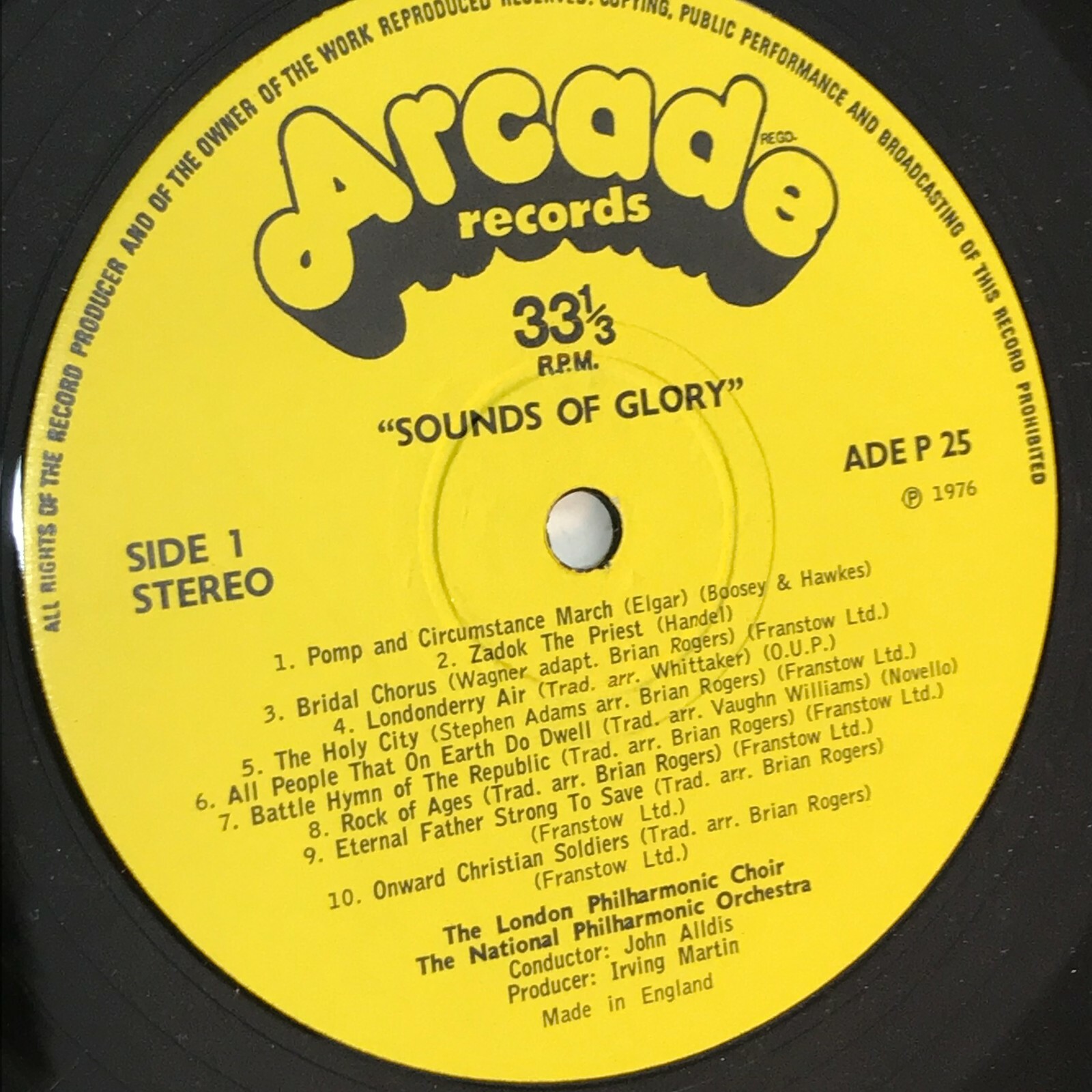 THE LONDON PHILHARMONIC CHOIR conducted by JOHN ALLDIS with THE NATIONAL PHILHARMONIC ORCHESTRA Sounds Of Glory - 1976 UK vinyl LP focussing on those rousing tunes of yore. In a fully laminated picture sleeve. ADEP25 01 Pomp And Circumstance March – Elgar 02 Zadok The Priest – Handel 03 Bridal Chorus – Wagner 04 Londonderry Air – Traditional 05 The Holy City – Stephen Adams 06 All People On Earth Do Well – Traditional 07 Battle Hymn Of The Republic – Traditional 08 Rock Of Ages – Traditional 09 Eternal Father Strong To Save – Traditional 10 Onward Christian Soldiers – Traditional 11 Jerusalem – Parry 12 Rule Britannia - Sargent, Arne 13 God That Madest Earth And Heaven – Traditional 14 O God Our Help In Ages Past – Traditional 15 Parise My Soul The King Of Heaven – Traditional 16 Brother James' Air – Traditional 17 Abide With Me – Traditional 18 O For The Wings Of A Dove (Soloist – Helen Walker) 19 For Unto Us A Child Is Born – Handel 20 The Hallelujah Chorus - Handel Record Condition : Excellent Sleeve : Excellent Please check out our other items !