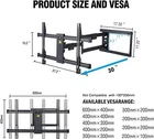 Return Policy Fast Delivery Trusted seller Long Extension TV Mount/Wall Bracket Full Motion with 30 inch Long Arm for Corner/Flat Installation fits 37 to 75" Flat/Curve TVs, VESA 600x400mm Holds up to 99lbs Product Description 30 INCHS LONG ARM TV Mount: Fits most 37"-75" flat/curve TVs , VESA patterns from 200x100 up to 600x400mm, weighing up to 99lbs FULL ADJUSTMENT: Full motion,extends, articulates, tilts, swivels, levels and collapses on this long arm full motion TV bracket.it can be adjusted to fit your any rooms and ensure the best viewing angle, cable management is included. MAKE FULL USE OF YOUR CORNER SPACE - Combining the strengths of the full motion articulating arms and the single stud wall plate, our corner TV mount is sturdier and easier to adjust to your desired angle when mounting in an angled corner and allows you to make better use of the space in your home. EASY FAST INSTALLATION: This Wall Mount TV bracket comes with pre-drilling wallplate template and detailed step-by-step installation manual to assist your installation.Its also included variety of screws and spacers to accommodate any brand of Televisions. This TV Wall mount can be work in 16" wood stud wall and solid concrete/brick wall. RELIABLE BRANDS: This long arm TV mount is build with heavy duty carbon steel construction, unsplit wallplate and arm design to support TVs up to 99 lbs, and it is passed 310Lbs loading test.it has wide appaction: home,office,hospital,school,shopping mall,restaurant. Shipping Returns Payment Shipping Shipping is FREE to all addresses other than APO/PO boxes in the lower 48 states. All our stock ships from US-based warehouses. Shipped via USPS or UPS (depending on location and package weight) Unless stated otherwise, all orders will ship within 24-72 hours of your payment being processed. Check our feedback to see the great reviews of FAST shipping we offer. Returns Seller does not accept returns Payment We currently accept payment via eBay managed payments only. Once payment is cleared, we will dispatch your shipment within 1-3 business days. Please refer to the "Shipping" tab for more information regarding shipping speed to your destination.