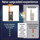 Long Range Walkie Talkie 2 Set 50 Mile Two Way Radio Charge Headset Waterproof About this item: 【Two way radio】FCC ID: 2AJGM-F22. Baofeng F22 have FRS 22 channels, 50 CTCSS privacy codes and 105 DCS privilege codes.You can set your own main channel and privacy code without worrying about being disturbed.When the walkies talkies on the same channel and privacy code,you can communicate with other brands FRS radios. 【Multi-function】 The large flashlight can meet your night lighting, the portable frs two-way radio has weather alarm, which is suitable for your outdoor travel, and also has 22 channels, 12 NOAA channels, dual monitoring mode, channel scanning, 155 privacy codes, call function and 8 ring tone options, VOX hands-free function and HD audio quality, as well as Keypad Lock, Backlit LCD Display, Low Battery Audible Alert, 2Pin Kenwood headset jack. 【NOAA Weather Alert】 The adult walkie talkie supports NOAA weather service. It can scan 12 NOAA Weather channels. When you turn on the weather alarm function, the two-way radio will give an alarm if there is a risk of bad weather. Gives you plenty of time to deal with disasters such as Tornadoes, Hurricanes, Thunderstorms, Floods, Earthquakes, etc. This is a necessity for life safety. 【Replaceable battery】 It is powered by three AA batteries (batteries are not included in the package). The battery can be replaced at any time. The supplementary power supply can be easily carried to ensure that it will not be in a power-off state. (Note: Alkaline batteries can only be used for replacement and cannot be recharged. NiMH batteries can be recharged and recycled). 【Multi-scene application】 Walkie talkies long range can reach 3 miles in open areas.If there are buildings, the working range will be reduced.Two way radio for adults, palm-sized, strong material and resistant to falling, rain-proof, very suitable for various application scenarios such as: road trip,warehouse,cruise ship,outdoor picnic, camping, riding, hotel management, warehouse, building construction, restaurant, school Playground and church. 【 What you get 】Package contains (walkie talkie, belt clip, hand strap, ) X 2 and user manualX1.Easy to operate, suitable for novices, and provide technical guidance. All day customer service replies to ensure your purchase enjoyment. The Walkie Talkies is super suitable for hiking, biking, camping trip, road trip, cruise ship and outdoor adventures, etc. They can Be Used in Some Harsh Environments and Achieve Communication Security for People. Baofeng Professional Walike Talkies are Exquisite and Compact in Hardware Design, with Outstanding Texture, Ruggedness and Durability, and The Voice of the Call is Clear and Sensitive, and The Range is very Powerful to Achieve the Industry Customers' Fine Command and Dispatch Effect. THANKS FOR SHOPPING WITH US!!
