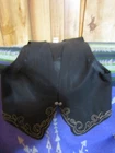 Beautiful condition VINTAGE MADE IN USA gunfighter style cowgirl western black vest with tan black embroidered trim on front and back.has metal button front closure. Extremely nice condition..its black in color