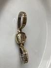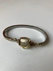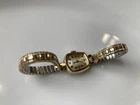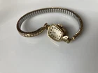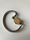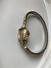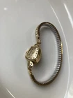 This vintage Longines wristwatch features a 14k gold case with 10k RGP engraved detailing, showcasing a luxurious and elegant design. The bezel, band, and dial are all in a matching gold tone, creating a cohesive and sophisticated look. The watch is a mechanical (manual) movement with an analog display, making it a classic timepiece. It is a women's dress/formal style accessory, ideal for adding a touch of vintage charm to any outfit. Minor dent on the side. The Swiss-made Longines watch is a timeless piece that exudes quality and craftsmanship. The band is Speidel USA Final Sale, no return no exchange
