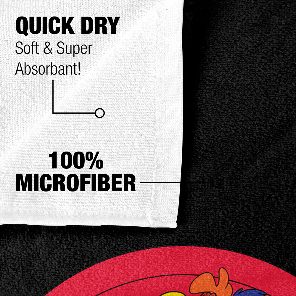 30" x 60" BEACH TOWEL - This lightweight and compact beach towel is soft and comfortable, breathable, and durable. It is super absorbent to dry you quickly. The front features microfiber polyester for maximum color vibrancy and the back features cotton for maximum absorbency. HAND PRINTED IN THE USA - All our products are hand-printed in the USA using a dye sublimation process that creates slight imperfections over seams and/or folds that are unique to and a part of each item. Printed one-side only. VERSATILE AND EASY CARE - Our beach towels have an unfolded size of 30” x 60” making it perfect for both adults and children. It can be used while soaking up the sun at the pool, relaxing at the beach or simply at home. This product makes a great gift for friends, families, or just for yourself! Our products are machine washable. Tumble dry low. DISCLAMER: Towel may arrive flat and thin due to printing process. Fibers will expand after first or second wash. OFFICIALLY LICENSED - Each of our designs are officially licensed and 100% authentic. The designs are created by our incredibly talented in-house graphic art team who often hand draw and illustrate each design. 100% SATISFACTION GUARANTEED - If you are unsatisfied with our product, we will replace it or refund you immediately.