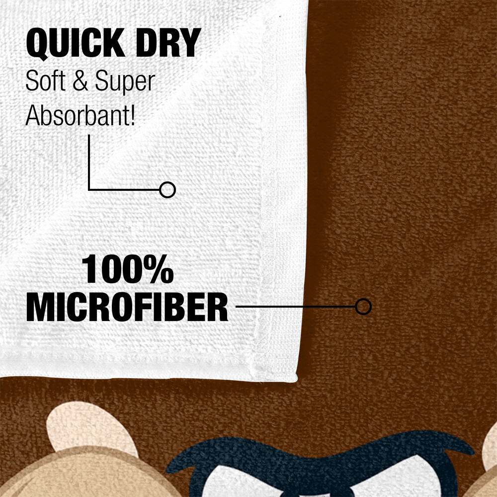 30" x 60" BEACH TOWEL - This lightweight and compact beach towel is soft and comfortable, breathable, and durable. It is super absorbent to dry you quickly. The front features microfiber polyester for maximum color vibrancy and the back features cotton for maximum absorbency. HAND PRINTED IN THE USA - All our products are hand-printed in the USA using a dye sublimation process that creates slight imperfections over seams and/or folds that are unique to and a part of each item. Printed one-side only. VERSATILE AND EASY CARE - Our beach towels have an unfolded size of 30” x 60” making it perfect for both adults and children. It can be used while soaking up the sun at the pool, relaxing at the beach or simply at home. This product makes a great gift for friends, families, or just for yourself! Our products are machine washable. Tumble dry low. DISCLAMER: Towel may arrive flat and thin due to printing process. Fibers will expand after first or second wash. OFFICIALLY LICENSED - Each of our designs are officially licensed and 100% authentic. The designs are created by our incredibly talented in-house graphic art team who often hand draw and illustrate each design. 100% SATISFACTION GUARANTEED - If you are unsatisfied with our product, we will replace it or refund you immediately.