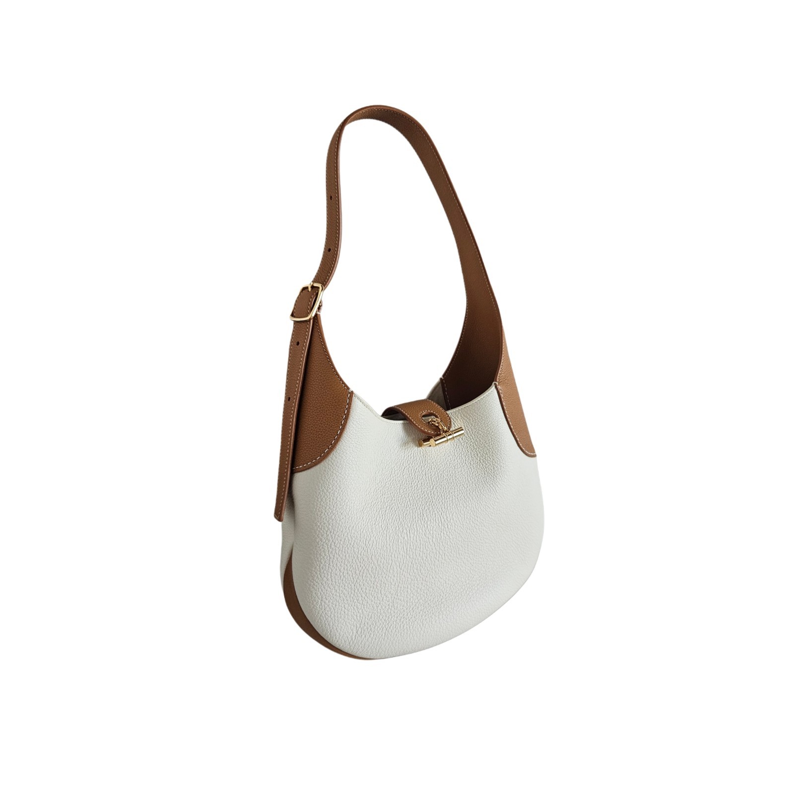 Loro Piana Beige & Brown Hammered Calfskin Toggle-Fastening Shoulder Bag Attributes Material: Leather Color: Beige/ Brown Condition: Excellent Inclusions: Dustbag