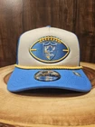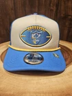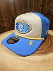 Crafted for versatility and timeless style, the Los Angeles Chargers New Era 9Forty A Frame Golfer Rope SnapBack Adjustable Hat is a quintessential accessory for any fan's wardrobe. The hat features a solid blue colorway, complementing the iconic New Era brand, and is designed to fit most with its adjustable snapback closure, ensuring comfort for all-day wear. Whether you're heading to a business meeting or a casual outing, this baseball cap is suited for a variety of occasions. It's a tasteful nod to the sports industry, with a Golfer and NFL Football theme, while the rope and A-frame design add a modern edge, making it a perfect choice for those who appreciate streetwear and sports-inspired fashion.