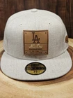 Elevate your headwear collection with the Los Angeles Dodgers New Era 59Fifty Hat, a timeless piece of sports memorabilia and a fashion statement alike. Crafted with high-quality leather, this fitted cap in size 7 5/8 features distinctive leather patches that add a touch of sophistication and exclusivity. The solid gray color and classic baseball cap style make it a versatile accessory suitable for a variety of occasions, from casual outings to more formal events. Whether you're a die-hard MLB fan or a connoisseur of streetwear, this hat fits the bill. It's designed for men and boasts a sleek look that's perfect for accessorizing any outfit. With its durable material and a range of features including a secure fitted design, this New Era cap is a rare find that seamlessly blends sports heritage with contemporary style.