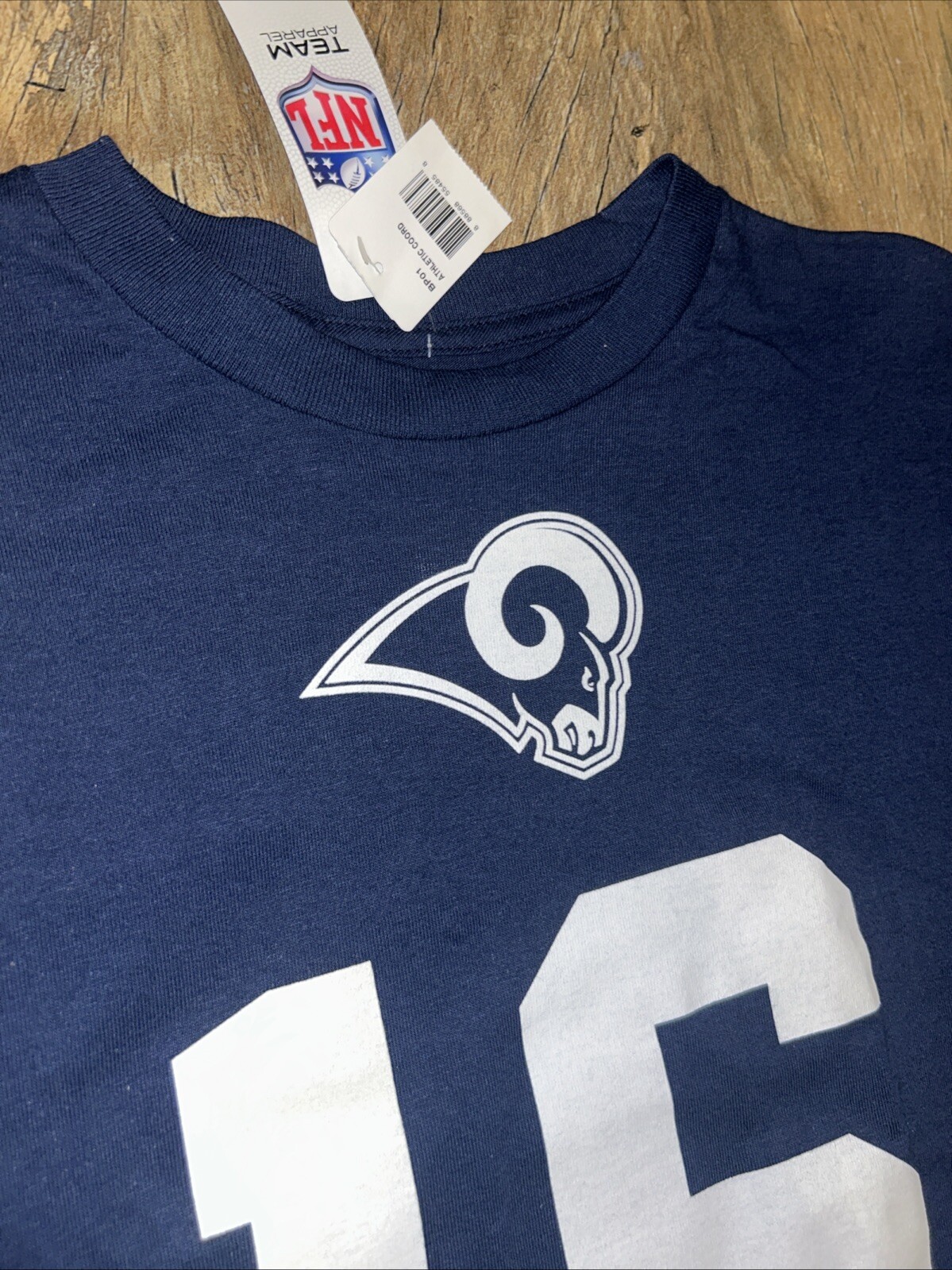 Show your support for the Los Angeles Rams with this blue Goff #16 t-shirt. Made of high-quality Team Apparel, this shirt is perfect for the regular season. It features a tag with the official NFL license and is perfect for any fan of the sport. This shirt is a size XL and is perfect for any man who wants to show their team spirit. It is made in Honduras and is a great addition to any sports memorabilia collection. Get your NFL Los Angeles Rams Men Blue Goff #16 T-Shirt Tee today!