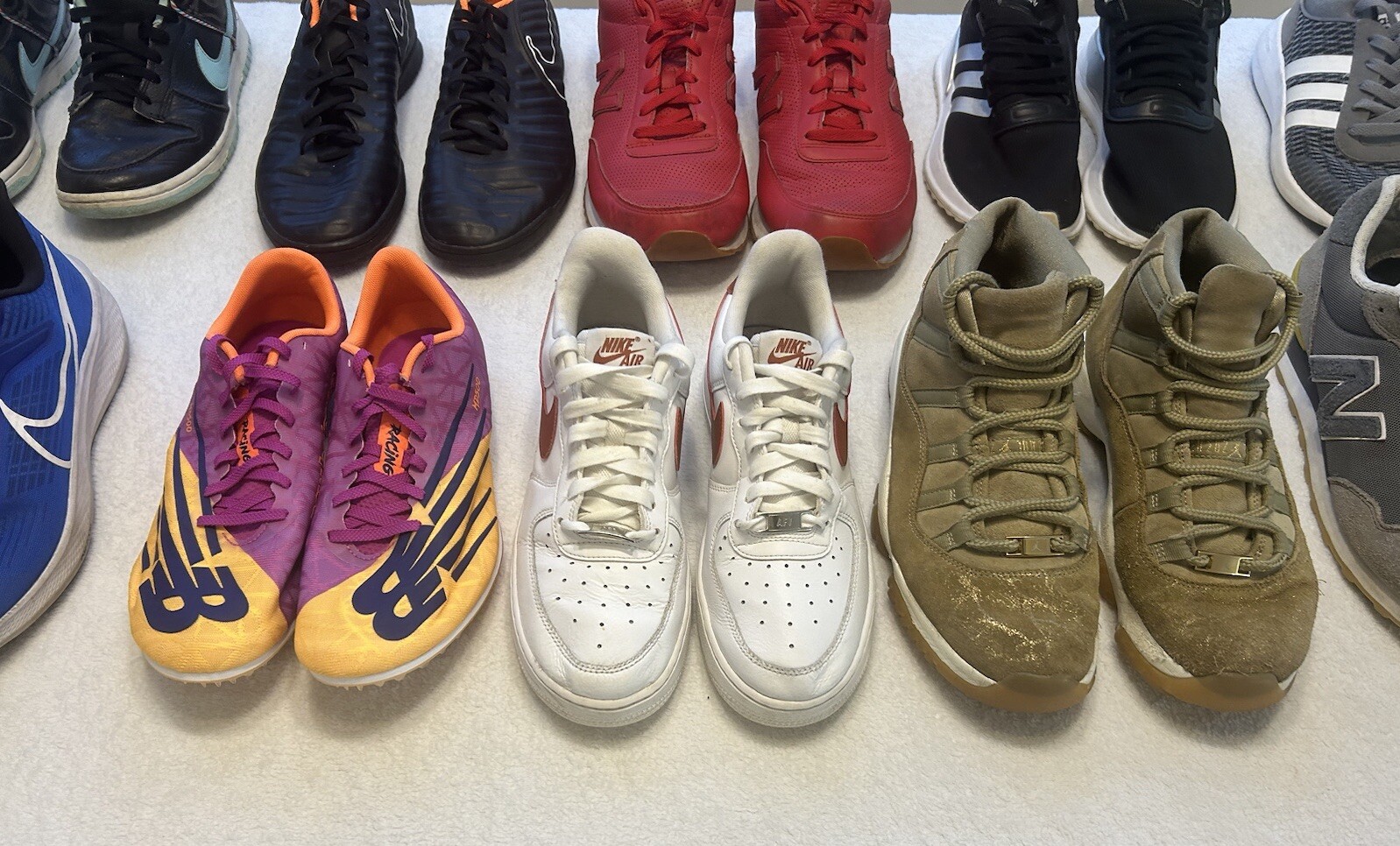 Lot 10 Pairs Of Athletic Shoes Bulk Wholesale Reseller Hoka Brooks Nike Saucony Reebok Adidas Jordan Mixed Sizes The shoes pictured in this listing are an example of some of the lots available. An order placed will not include this specific mix of men’s shoes. All Shoes in Great Condition with Ample Margin For Resale Free Shipping