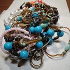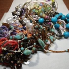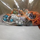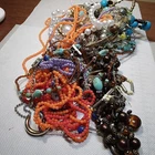 This mixed lot of unisex adult jewelry weighs one pound and contains various items such as earrings, necklaces, chains, bracelets, pendants, charms, bangles, junk/scrap, and beads. The materials and base metal used in the lot are unknown, but they offer great potential for craft and repair projects. The jewelry appears to be broken or worn, making it perfect for those who enjoy upcycling and repurposing items. This lot falls under the categories of Jewelry & Watches, Jewelry Care, Design & Repair, and Jewelry for Parts or Repair.