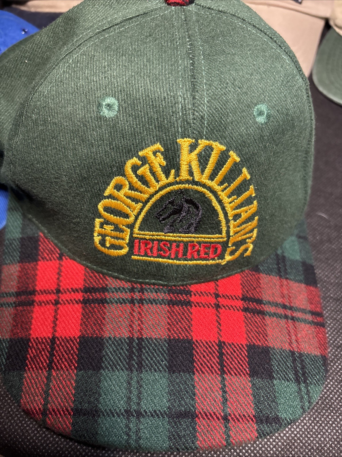 George Killian’s Irish Red beer branded snapback hat with green crown and red tartan plaid brim Bass Pro Shop Fishing Dept embroidered strapback adjustable cotton cap Vintage 90s KC Chicago snapback hat 2011 MG Reno Tahoe A Western Experience event embroidered khaki cap Chicagoland MG Club embroidered baseball cap Indigo Creek Golf Club vintage style trucker hat with multicolor striped brim Vintage Alaska trucker snapback blue corduroy workwear style hat Vintage San Sun US Navy Blue Angels strapback hat Jaguar Motor Cars red vintage automobile snapback hat Assorted additional vintage hat Mixed styles including snapback, trucker, and strapback. Sold as a single lot.