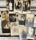 Lot of 11 RPPC's Real Photograph Post Cards of Hispanic Women & Girls dated 1920 - 1924 in Texas. Most photographs are black and white with a couple being sepia and are approximately 3-3/8" x 5-3/8". All cards have some degree of yellowing due age, slight bends/creasing, and stains/spanish writing on back. Photographs feature young and middle age Hispanic women posing with chairs/indoor and a couple are outdoor photo's.