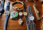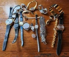 This lot of 18 wristwatches is perfect for those who enjoy the challenge of repairing timepieces. With a variety of brands including Timex, Gruen, L.E.I. and Brite Band, there is something for everyone. The collection includes both men's and women's watches, making it suitable for a range of individuals. The watches are run by quartz movements, giving them accurate timekeeping abilities once repaired. Please note that these watches are being sold as-is, without any warranties or guarantees. Whether you are a collector, hobbyist, or just looking for a new project, this lot of watches is an excellent choice. I found a box with 3 more watches and some links. Timex-Waltham-Cleveland Indians. I'll add those to the bunch as a bonus for reading this. Check pics. Message any questions. Thanks for looking. Enjoy!