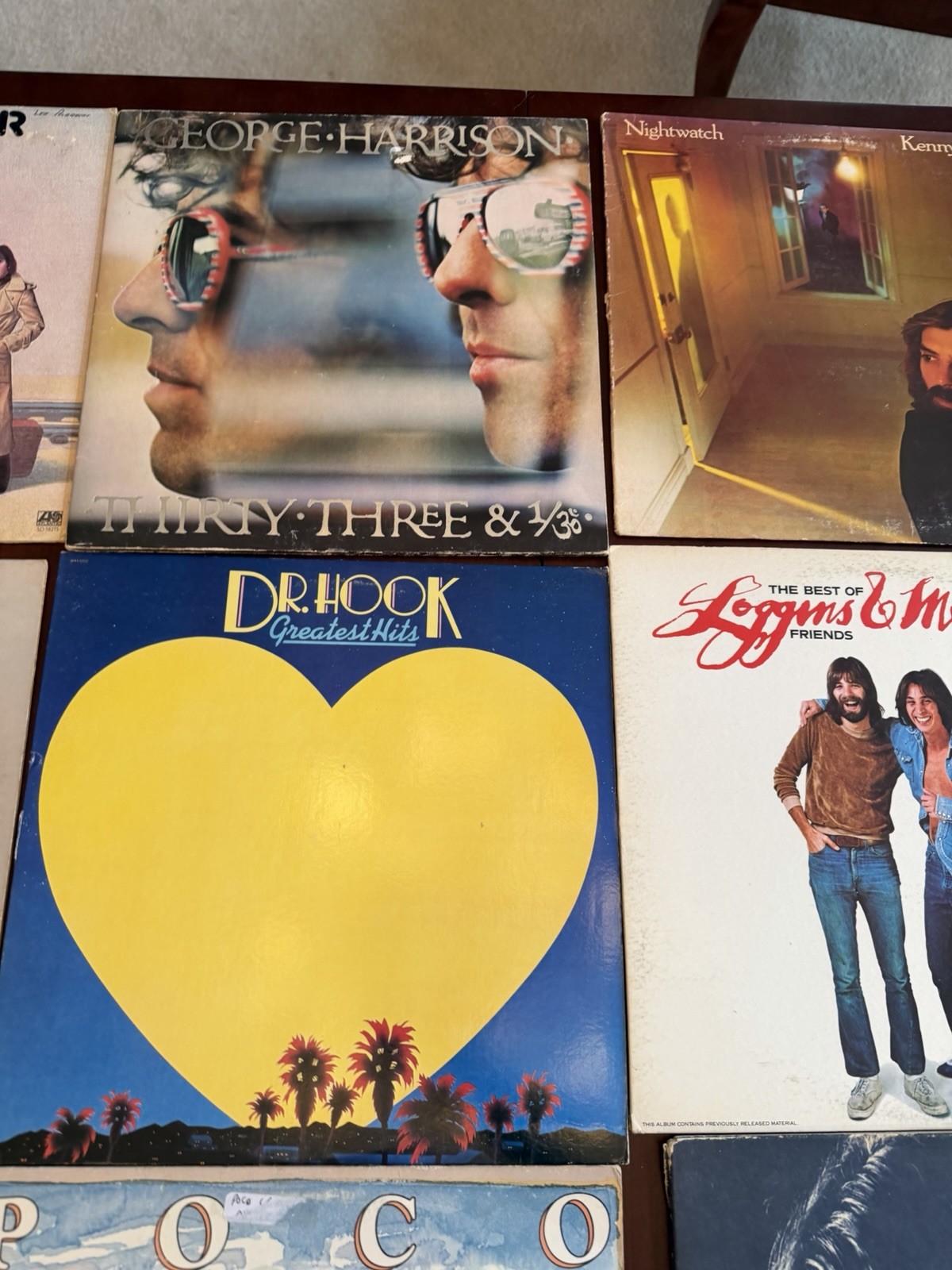 This lot of 20 vintage vinyl records features various artists from the 70s such as David Bowie, George Harrison, and Neil Diamond. The records are in high-fidelity LP format, 33 RPM speed, and made of vinyl material. The collection includes a mix of stereo audio channels and comes in a cardboard sleeve case, making it a perfect gift for a birthday occasion. With a nostalgic 1970s style, this assortment of vinyl records offers a glimpse into the music scene of that era. Some normal wear on album covers. Visually inspected. Looks in good playing condition, but untested.