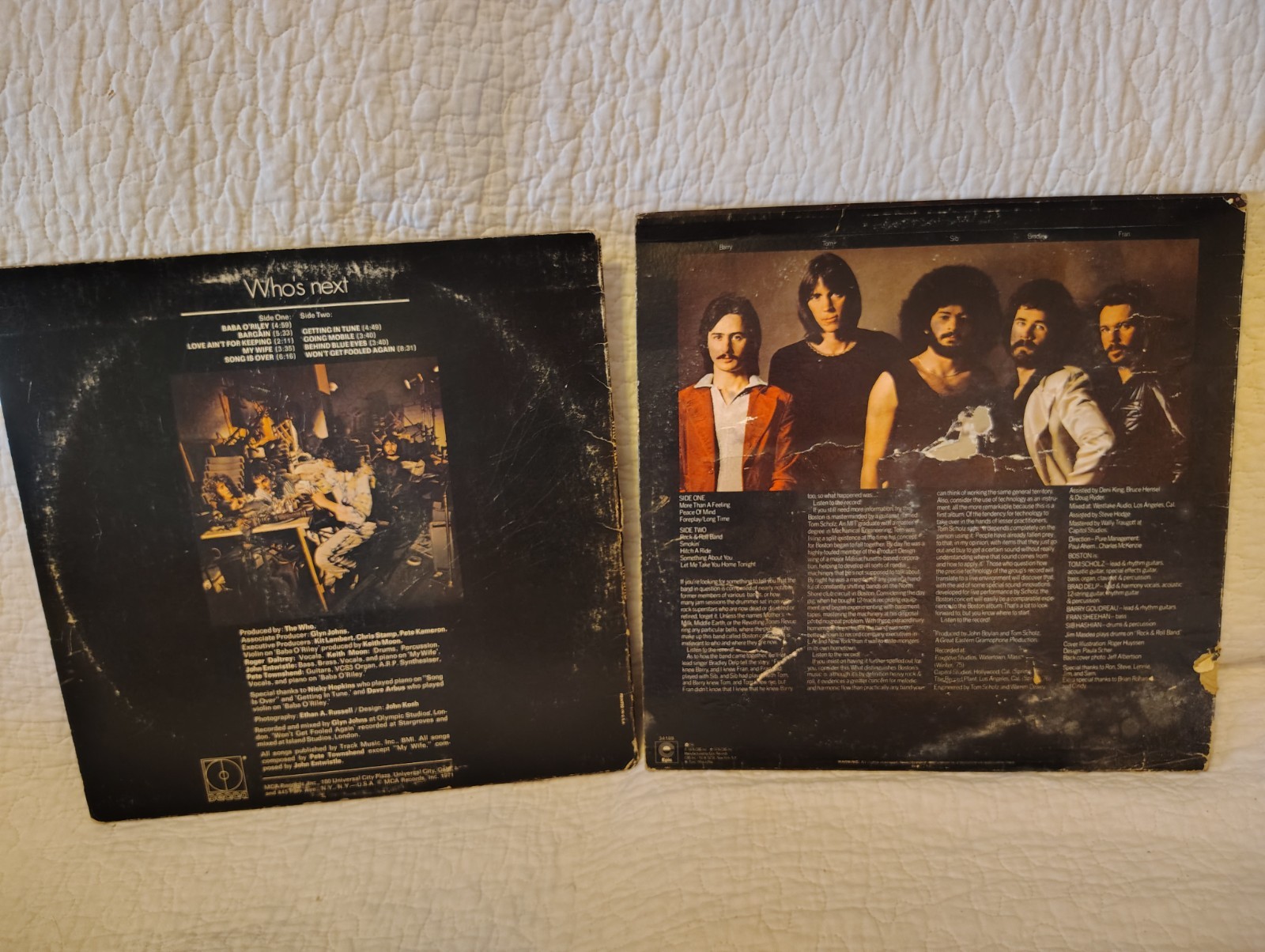 This lot includes: 1) Boston - Self-Titled - 1976 - Epic/CBS - 34188. 2) The Who - Who's next - 1971 - Decca/MCA - DL 79182. 3) Jackson Browne - Running on Empty - 1977 - Elektra/Asylum - 6E 113. 4) Jackson Browne - Hold Out - 1980 - Elektra/Asylum - 5E 511. 5) Jackson Browne - Late For The Sky - 1974 - Elektra/Asylum - 7E 1017. 6) Jackson Browne - For Everyman - 1973 - Elektra/Asylum - SD 5067. 7) The Band - The Last Waltz (3 LP set) - 1978 - Warner Brothers - 3WS 3146. 8) Daryl Hall & John Oates - No Goodbyes - 1977 - Atlantic - SD 18213. 9) The Doobie Brothers - Toulouse Street - 1972 - Warner Brothers - BS 2634. 10) Iron Butterfly - In-A-Gadda-Da-Vida - 1968 - Atco Records - SD 33-250. 11) The Byrds- Farther Along - 1971 - Columbia - KC 31050. 12) Rare Earth - Get Ready - 1969 - Motown Records - RS 507. 13) Chicago - Self-Titled (2 LP) - 1970 - Columbia - KGP 24. 14) The Marshall Tucker Band - Running Like The Wind - 1979 - Warner Brothers - BSK 3317. 15) Chicago - Chicago 13 - 1979 - Columbia - AL 36105. 16) Chicago - Hot Streets - 1978 - Columbia - FC 35512. 17) Chicago - The Chicago Transit Authority (2 LP) - 1969 - Columbia - GP 8. 18) Bruce Springsteen - Born In The U.S.A. - 1984 - Columbia - QC 38653. 19) Eagles - The Long Run - 1979 - Elektra/Asylum - 5E 508. 20) Bread - The Best of Bread - 1973 - Elektra - 6E 108. 21) Pure Prairie League - Two Lane Highway - 1975 - RCA - APL1 0933. 22) Bread - Lost Without Your Love - 1977 - Elektra - 7E 1094. 23) America - Hearts - 1975 - Warner Brothers - WB 56115. These are sold as is, but the actual vinyls don't look too bad. I would say they are all G+ and up. Covers are hit or miss, but most aren't too bad. Please see all pics and feel free to ask any and all questions.