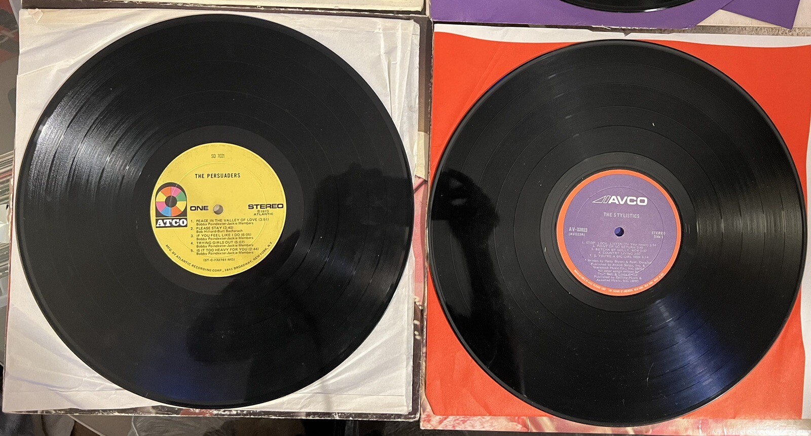 Lot of 6 Vintage Vinyl Records - R&B/Soul - Aretha, Isaac, Stylistics, Crusaders. There maybe some tips and tears in the covers or slips but record plays.