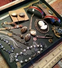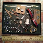 Lot of Antique to Vintage CRAFT Pieces and Parts of Jewelry, Repair, Harvest! ("Fun old bits and pieces! You receive all jewelry you see, but not the display tray. Great fun for the crafter/treasure hunter! See pics for more visual info including measurements! Shipped with care!") Thanks for stopping "buy" and Thanks in Advance for your purchase!