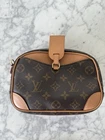 The Louis Vuitton Deauville Crossbody Mini in brown canvas is a stylish and practical accessory for women. This square-shaped bag features the iconic monogram pattern on the exterior, with a zip closure and gold hardware accents. The beige leather handle/strap adds a touch of luxury, while the brown fabric lining creates a sophisticated look. With a compact size and coated finish, this mini crossbody bag is perfect for carrying essentials while on the go, showcasing the timeless elegance of the Louis Vuitton brand.