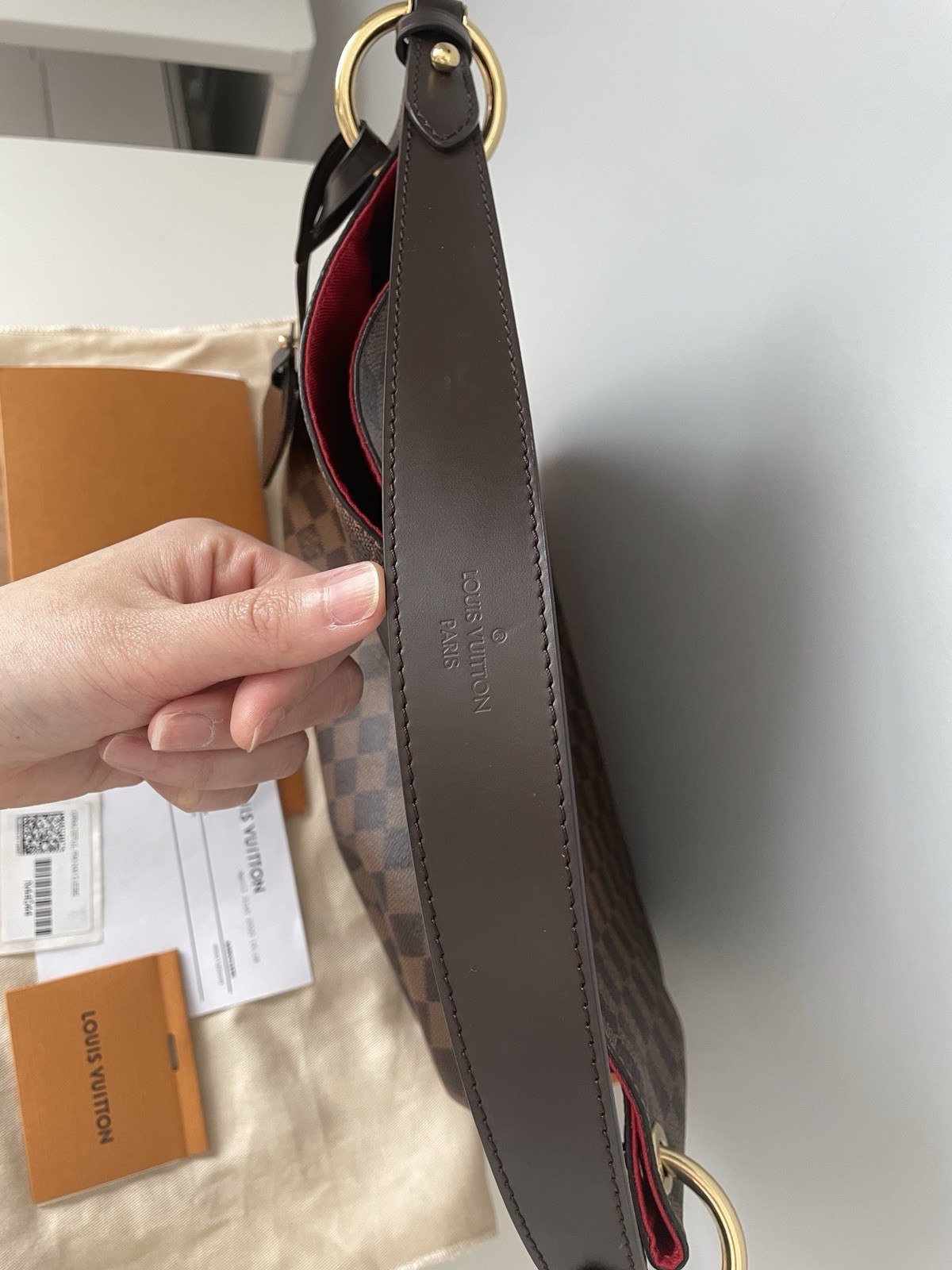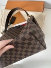 Authentic Louis Vuitton Graceful PM shoulder bag in the classic Damier Ebene canvas. This elegant hobo-style bag features a lightweight design, gold-tone hardware, and a comfortable leather shoulder strap. The interior has the signature red textile lining with a zip pocket for essentials. The Graceful PM is a perfect everyday luxury bag—spacious enough for daily use while still maintaining a sleek silhouette. Included: • Louis Vuitton Graceful PM Damier Ebene bag • Original Louis Vuitton box • Louis Vuitton dust bag • Gift receipt • Product tag/card shown in photos Condition: Excellent condition. Canvas is clean with no cracks, hardware is shiny, and strap is sturdy. Interior lining is clean. Please review photos for full condition details. Details: • Model: Graceful PM • Canvas: Damier Ebene • Interior: Red textile lining • Gold-tone hardware • Magnetic closure Approx. Size: 13 x 11 x 5 inches (L x H x W) Ships carefully packaged. Authentic guarantee by eBay, no return accepted