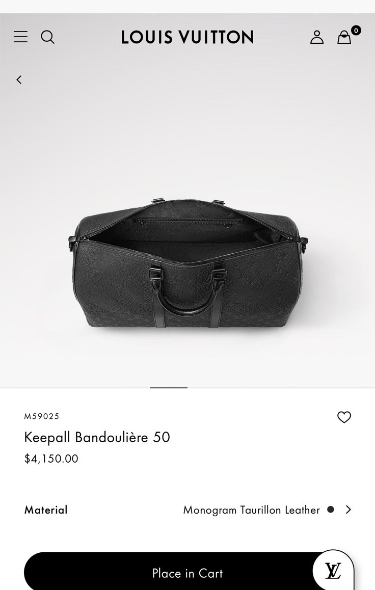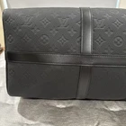 The Louis Vuitton Keepall Bandoulière 50 is a luxurious travel bag designed for men. Made from leather with a canvas fabric type, this duffle bag features a zip closure, double handles, and an adjustable strap for added convenience. The stylish color and designer brand make it a sophisticated choice for any occasion, perfect for those who appreciate high-end fashion and quality craftsmanship. Made in France by Louis Vuitton, this bag embodies luxury and elegance. The bag has never been used and is in brand new purchased at Louis Vuitton in Florence Italy. I tried to take as many pictures as I could. No bag has perfect condition, but this is pretty close. There looks to be a few marks as shown in the photo. I have not tried to clean them. This new interpretation of the iconic Keepall is crafted in sumptuous Taurillon leather embossed with the House’s historic Monogram pattern. A masterpiece of Louis Vuitton know-how, it’s compact enough to be used as a carry-on but large enough to hold everything for a short trip. A sophisticated bag for customers who like a signature look and high-end materials. 19.7 x 11.4 x 9.1 inches (Length x Height x Width) Black Taurillon Monogram leather Black cowhide leather trim Textile lining Matte black hardware Cabin-size Zipped closure Large main compartment Inside zipped pocket Leather name tag Strap:Removable, adjustable Strap drop:14.2 inches Strap drop max:19.7 inches Handle:Double A copy of the receipt will be included. If requested, I can send the original box.