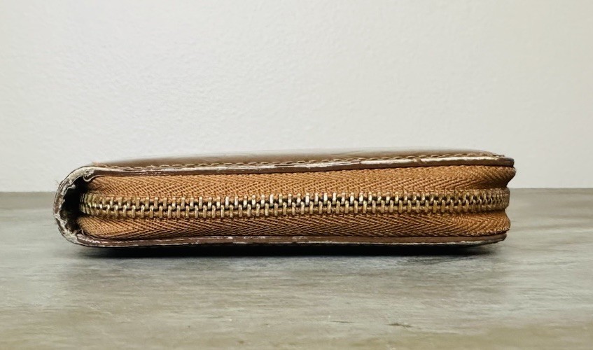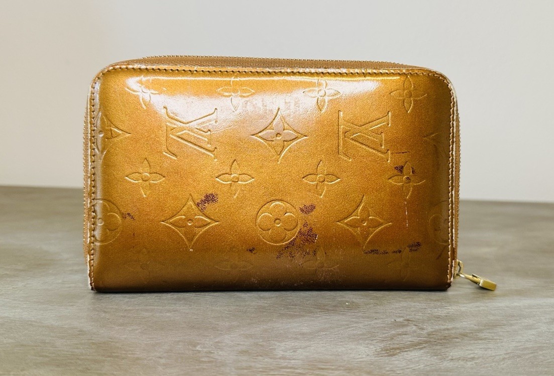 Elegant Louis Vuitton wallet with embossed monogram. Shimmering gold finish. Secure zip closure. This color is a stunning bronze/gold -Overall good condition - Vernis has some light marks but overall very nice -Interior is really good -Coin pocket has normal peeling for this model -Corners are good, no cracking -Zipper works as it should -No smells or odors #LouisVuitton #LV #gucci #fendi #prada #louboutin #ysl #wallet