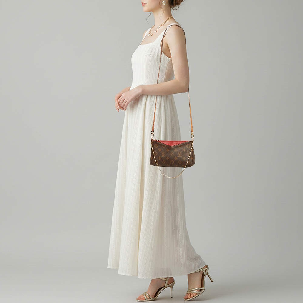 Our eBay Store About Us Contact Us Add to Favorite Sellers Louis Vuitton Pallas Cherry Monogram Canvas Chain Clutch This authentic Louis Vuitton Pallas clutch brings a little drama to the signature Monogram with that rich cherry accent. The chain strap adds a dressed-up feel, while the compact shape keeps it sleek and practical. Product Details Brand Louis Vuitton Includes The Luxury Closet Packaging, Detachable Strap Certified by The Luxury Closet This item has gone through a detailed authentication process overseen by our experts. We offer a lifetime guarantee of authenticity on all our items. How We Check The in-house team of experts at The Luxury Closet is highly trained to verify the authenticity and the condition of the luxury products. They ensure that only 100% authentic items are put on sale.The evaluation process is unique with its own mix of assessment criteria and differs according to the category. Each item is evaluated based on the following combination of hallmarks, hardware, stitching, symmetry, material, craftsmanship, stamping, codes, hologram stickers, and packaging. Our authenticators also check if the items have been modified or amended (e.g., aftermarket diamonds, replaced batteries, repaired bags, etc.) International Buyers Import duties, taxes and charges are not included in the item price. These charges are the buyers responsibility. Please check with your country’s customs office to determine what these additional cost will be prior to buying.