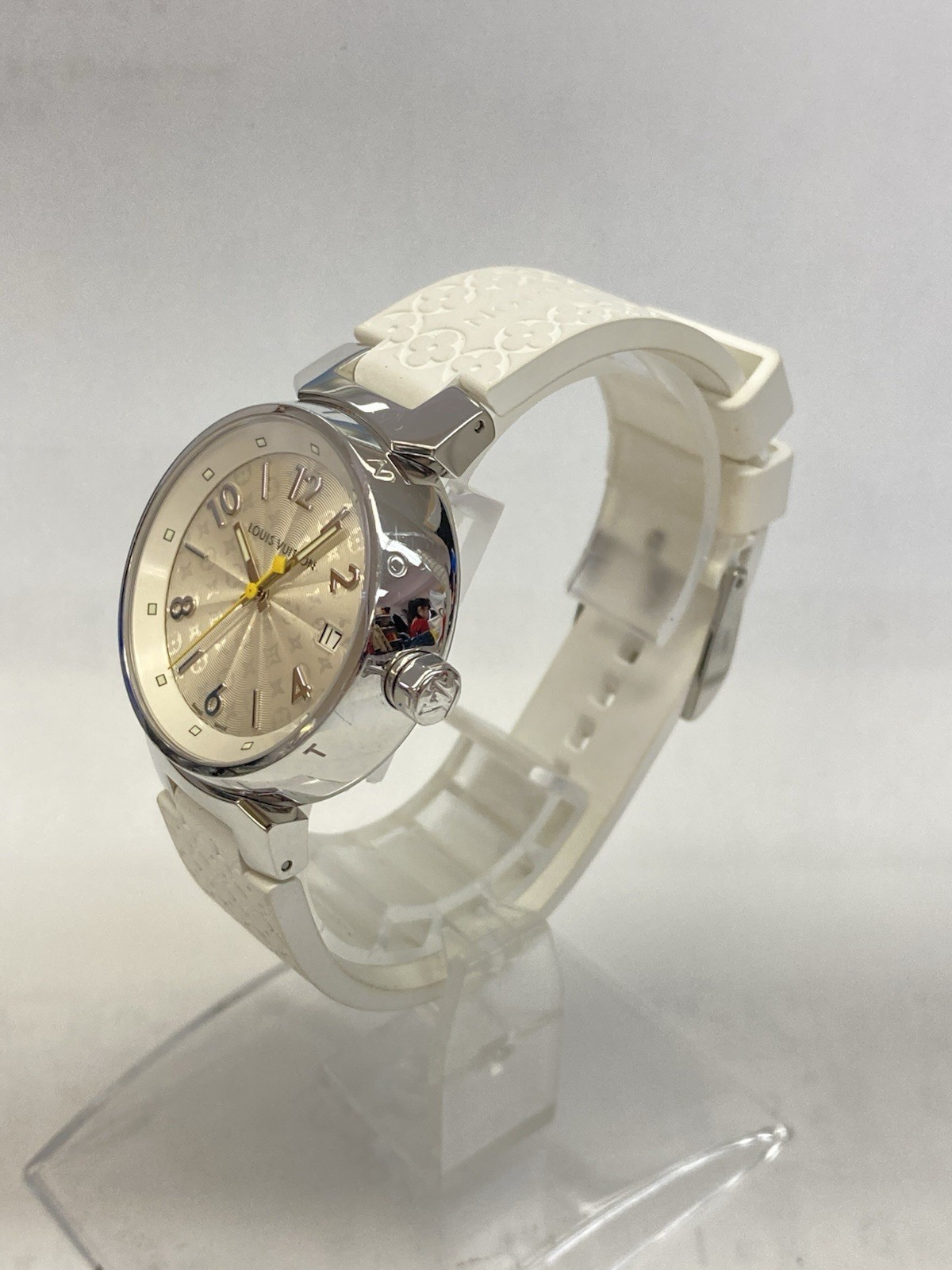used LOUIS VUITTON Q1313 Tambour Ladies' watch 32mm Quartz Rubber belt 19527 Case size :32 mm(1.25 inch) Bracelet arm circumference:17.0 cm(6.69 inch) ※Approximate size Case Material: Stainless steel Band Material:Rubber Dial color : Monogram design silver Movement : Quartz (battery) Model number :Q1313 Serial number :SA8758 Accessory:None Condition:AB rank There are minor scratches on the case sides and back cover. The rubber belt has some stains and discoloration. Nothing wrong with normal use. SOSLO ★★ About Ranks ★★ N New SA unused A It's not new, but it's in a good condition with little feeling of use. AB It has some feeling of use, but it's in relatively good condition. B Overall, there are scratches and dirt, and it feels like it's used. BC Overall, there are scratches and dirt, and the feeling of use stands out. C Items that contain junk that are conspicuous and unsuitable for reuse ★★ About our products ★★ We guarantee that all our products are 100% authentic and genuine brand name products. In addition, all items are inspected and tested by professional appraisers. Please check the condition and photos of the item(s) carefully before bidding or purchasing. If you are not satisfied with the merchandise, please contact us before leaving neutral or negative feedback. ★★ About International Shipping ★★ We ship via FedEx or DHL. All items are shipped from Tokyo, Japan. Also, shipping is free worldwide. *Some areas may incur shipping charges. However, import duties, taxes, and other fees are not included in the item price or shipping cost. It is the buyer's responsibility to pay for any import duties or taxes. Please check with your local customs office before making a purchase. Customs fees are normally charged by the shipping company or collected when you pick the item up. These fees are not additional shipping charges. ★★ About the payment deadline ★★ Please make payment within 5 days after the auction ends or after making a purchase. We will ship the item within 2 business days after confirming the payment. ★★ About us ★★ We are closed on Saturdays, Sundays, and Japanese national holidays. Therefore, there may be delays in responding to inquiries, contacting you, or shipping items during those days. About usWe will continue to list many attractive secondhand luxury brand items in the future. If you have any concerns or questions, please feel free to contact us. Thank you for taking the time to read until the end.
