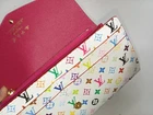 Louis Vuitton White Multicolor Takashi Murakami Sarah Long Wallet (With Box) A rare and iconic collaboration piece — the Louis Vuitton White Multicolor Sarah Long Wallet designed by Takashi Murakami. This wallet features the legendary multicolor monogram on a white canvas, making it a true statement of luxury and art. Condition: Gently used, well cared for Canvas is bright and clean Multicolor print is vibrant Interior is clean and organized Overall very good condition Features: Authentic Louis Vuitton x Takashi Murakami design White multicolor monogram coated canvas Long wallet silhouette Smooth leather interior Multiple card slots Separate bill compartments Zipper coin pocket Secure snap-button closure Stylish, elegant & collectible piece Zipper coin pocket Secure snap-button closure Stylish, elegant & collectible piece Included: Louis Vuitton original box