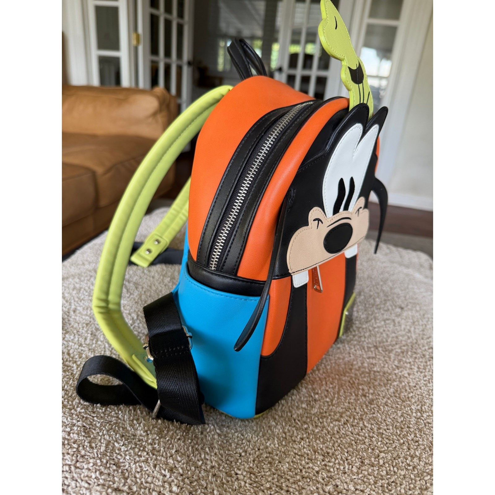 Get ready for some fun with this adorable Loungefly x Disney Goofy Cosplay Mini Backpack! This figural backpack features Goofy, one of Disney's most beloved characters. This is in preloved, excellent condition. Approx. 9" x 10 1/2" x 4 1/2"