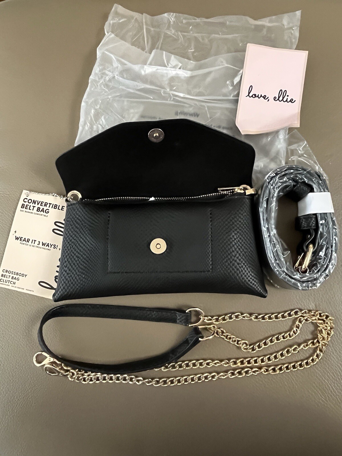 Love, Ellie Convertible Belt Bag Black Wear It 3 Ways 2 Straps BNWT Crossbody, Belt Bag, Clutch Fast Shipping