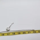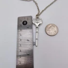 This silver tone necklace features a love heart key charm as the pendant, adding a touch of romance and coquetry to any outfit. The adjustable length of 19" to 22" makes it versatile for various occasions, from casual wear to anniversaries and parties. The lobster closure ensures secure wear, and the charm style is perfect for those who appreciate beauty and artistic pieces with a Y2K aesthetic. Made of metal, this necklace is a fashionable and timeless accessory that can be worn for many years to come. Good condition. This is used, so there is some slight wear, marks, scuffs and tarnish in spots (see photos) There is tarnish on the charm as well as the chain (see photo), and a pretty sizeable mark on one side of the charm pendant (see photo). The tarnish on the chain isn't as noticeable unless looking very close under bright light. The chain feels strong. This will come in a gift box. Please view all photos for full condition. https://www.ebay.com/str/nikidoodlestreasurecorner For other gift ideas or home items, visit my other ebay store, right around the corner. https://www.ebay.com/str/nikidoodlescorner N101