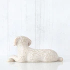 Sentiment: ”Always with me, full of personality!” written on Enclosure Card 1.25”h hand-painted resin figure of small white dog, lying down, such as a poodle, bicon frise, Pomeranian or mixed breed. Pets join the Willow Tree family! Dog and Cat figures work well with other family pieces to create Family Groupings. Hand-carved figures reveal their expression through body gestures only… a tilt of the head, a turn of the body. Packaged in fitted box ready for gift-giving. Artist Susan Lordi hand carves the original of each Willow Tree piece from her studio in Kansas City, MO. This piece is cast from Susan's original carving and painted by hand. Ready to display on a shelf, table or mantel. To clean, dust with soft brush or cloth. Our pets become much more than pets to us...they are constant companions, best friends, playmates, therapists, and always, always by our side, on our lap, at our feet. "Somehow our pets sense-they just know-how we feel. And totally accept us, in whatever emotional or physical state we appear. They teach us about friendship and patience and inner peace. They support us with loyalty, softness, an independent spirit and expressive gaze. It is true that animals have a sixth sense. It is the sense of love, unconditionally." - Susan Lord. The item is made in resin and hand-painted with lead-free paint. Supplied in a branded gift box and a gift tag with sentiment 'Always with me, full of personality' Not a toy or children's product. Intended for adults only. Height 3.0cm