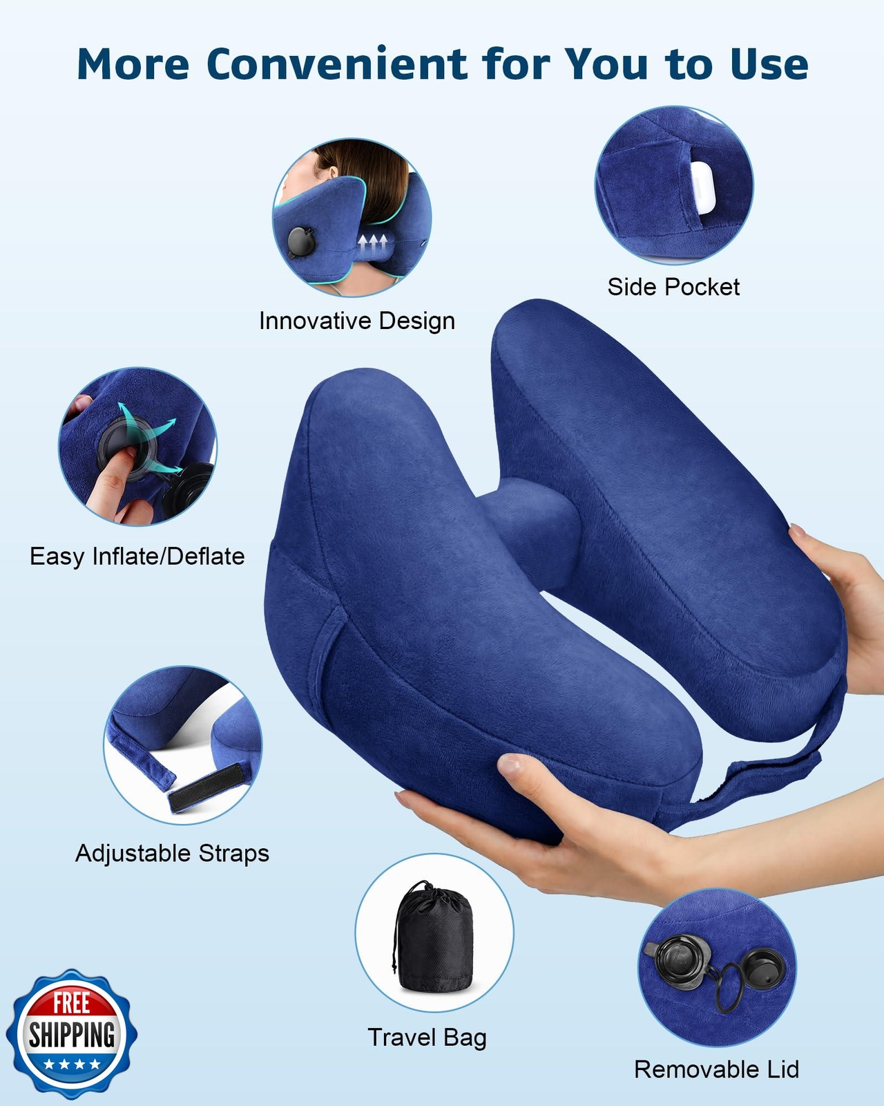 loveheek Travel Pillow Inflatable Neck Pillow Airplane Pillow with Velvet Cover Inflatable Pillow for Car/Train/Plane (Blue, M) Features Travel Pillow with H-Shape Design: Adjustable Side Wings & Flat Back Offer 360° Support on Flights, Trains, or Road Trips—Prevents Neck Strain & Keeps You Comfy! Portable Inflatable Pillow: Deflates to Fit in Waterproof Bag—Slips into Backpacks or Luggage for Planes, RVs, or Last-Minute Adventures! 3-Second Inflation Neck Pillow Airplane: Patented Valve Holds Air All Day—Adjust Firmness (80-90% Full) for Cloud-Like Comfort Anywhere! Ultra-Soft Airplane Pillow + Removable Velvet Cover: Machine-Washable, Lightweight vs. Bulky Memory Foam—Perfect for Clean, Compact Travel! Ideal Travel Gift: Travel Pillow for Flights, Offices, or Home—Surprise Loved Ones with Space-Saving, Pain-Relieving Support! Shipping Free & Fast Shipping: We offer free shipping to most of the USA with a normal delivery time of 3-7 days. However, due to the current situation, additional delivery time (up to 3 weeks) may be required for some items. Alternative Carriers: We may use alternative carriers (e.g., USPS, FedEx, UPS) to ensure your package arrives safely and on time. Due to the use of multiple carriers, we are unable to provide a tracking number automatically. Handling Time: Orders are processed and shipped within 1-2 business days of receiving cleared payment. Shipping Restrictions: Shipping to Alaska, Hawaii, Puerto Rico, Guam, and other US territories may incur shipping charges or delivery restrictions. Please contact us before ordering, or your order can be refunded/cancelled. State Restrictions: Certain items may not be shipped to California due to state regulations. Contact for Tracking Updates: If you require tracking updates or have any concerns about the delivery of your order, please feel free to contact us, and we will be happy to assist you. Return Policy 30-Day Hassle-Free Returns: If you are not completely satisfied with your purchase, you can return the item for free within 30 days of receiving it for a full refund or exchange. Easy Return Process: Contact us, and we will provide you with a prepaid return shipping label and detailed instructions. No Restocking Fee: There are no restocking fees for returns. However, the buyer is responsible for return shipping costs if the return is not due to a seller"s error. Refund Processing: Refunds will be processed within 1 business day of receiving the returned item in its original condition. Feedback Your feedback is extremely important to us. We strive to provide the best products and customer service possible. If you are satisfied with your purchase, please take a moment to leave us a positive review. If you have any concerns or issues with your order, please contact us before leaving negative feedback. We are committed to resolving any problems and ensuring your satisfaction. Contact Us If you have any questions or concerns, please feel free to reach out to our customer support team. You can contact us through the eBay messaging system. We are available Monday to Friday, 9:00 am to 5:00 pm EST, and we will do our best to respond to your inquiry within 24 hours. Thank you for supporting our small family business!